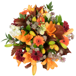 Brilliant flowers! Recipient was surprised by the thought, and I was happy with the results. The mixed daisy assortment was arranged well, and the autumn, rust coloured highlights suited it perfectly.